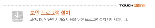 설치가 정상적으로 되지 않는 경우에는 사용중인 브라우저를 모두 종료한뒤 [제어판]의 [프로그램 추가제거]에서 [TouchEn nxKey with E2E for 32(64)Bit]삭제 후에 수동설치 파일로 재 설치후 이용하십시오.